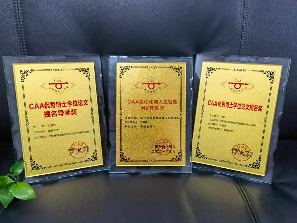 近日,在云南昆明举行的2021中国自动化大会(CAC2021)传来好消息,永利yl23411方勇纯教授带领团队荣获“中国自动化与人工智能创新团队奖”;卢彪获得优秀博士学位论文提名奖,指导教师方勇纯教授获得优博学位论文提名导师奖。