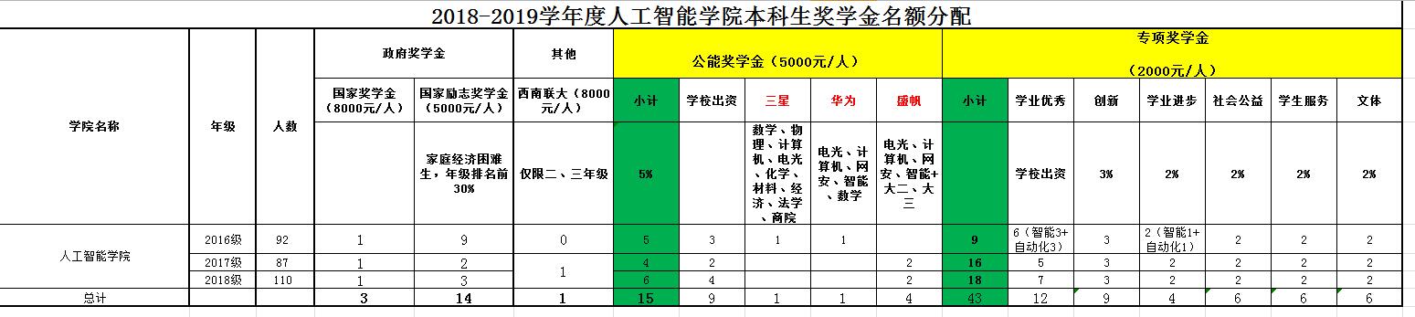 附件1:永利yl234112018-2019学年度奖助学金名额分配表
