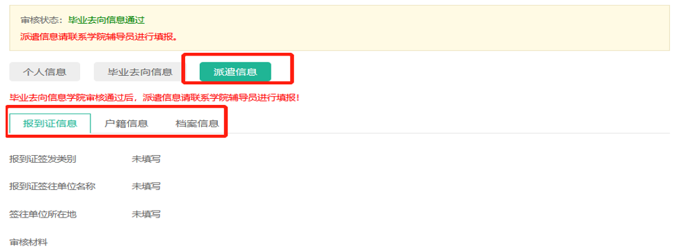 派遣信息由报到证信息、户籍信息和档案信息三部分构成,毕业去向信息公司审核通过,员工确认好派遣信息,并取得相应证明材料后,联系公司辅导员、就业干部,由公司在规定时间段内完成录入(具体时间等公司通知)。(录入的派遣信息员工可在派遣信息界面进行查看)
