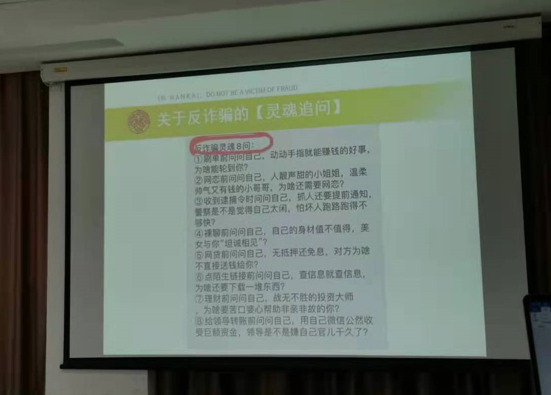 郑月阳老师指出,近年来,金融诈骗屡禁不绝,仅且受害对象正从老年人逐渐向中青年群体转移,高学历人才也难以幸免。仅2020年,就破获电信网络诈骗案件32.2万起,涉案金额2720余亿元,更有多起未经破获案件,被骗金额之多可想而知。因此,同学们务必提高警惕,应对骗术的不断升级。