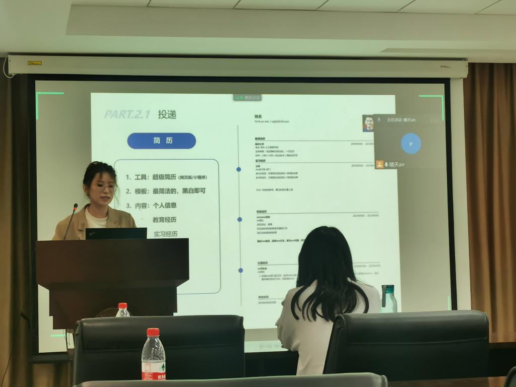 本科生辅导员吴亚坤以2020-2022届毕业生保研、考研、就业数据为例,通过数据和图表的形式向同学们展示了历届毕业生去向。她对毕业生去向数据进行了详细分析,并介绍了升学、就业相关政策以及公司和公司为助力员工就业开拓的各种招聘渠道和提供的就业指导服务。此外,吴亚坤结合实际案例,讲解了保研与考研的择校策略、时间规划、复习重点等注意事项。同时提示同学们多多关注入伍预征、三支一扶、自主创业等各类信息,拓宽未来去向的选择面,做出适合自己的选择,做好规划并全力行动起来。