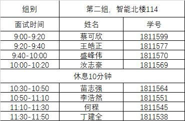 面试将于9月23日(星期四)上午9:00开始,请查看自己的面试组别和时间,至少提前10分钟到教室外候场。面试全程录音录像,不得携带任何通讯工具、电脑等,务必认真严肃对待。面试将综合考察推免生的思想政治素质和品德、专业素养、和综合素质,每位考生面试时间不得少于20分钟。