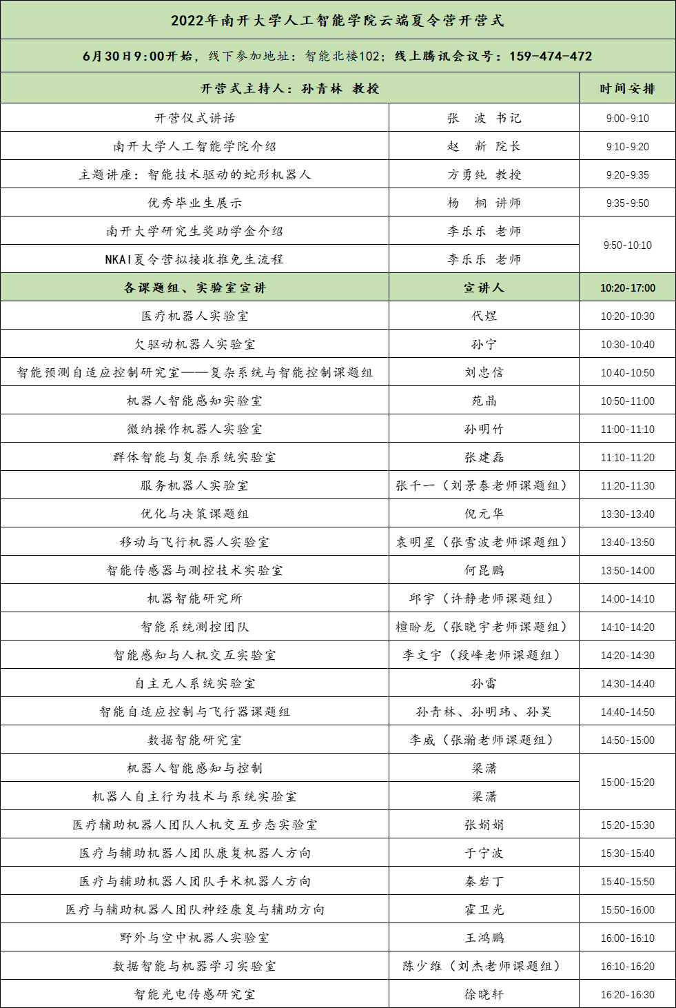 【夏令营】22年夏令营开营式时间表