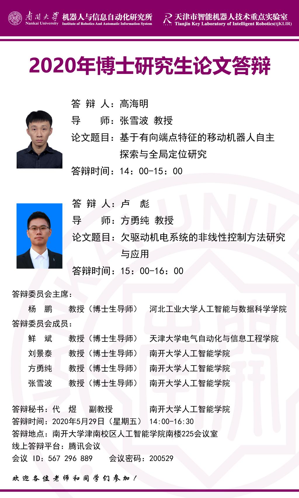 【答辩公告】永利yl23411博士研究生高海明、卢彪毕业论文答辩公告
