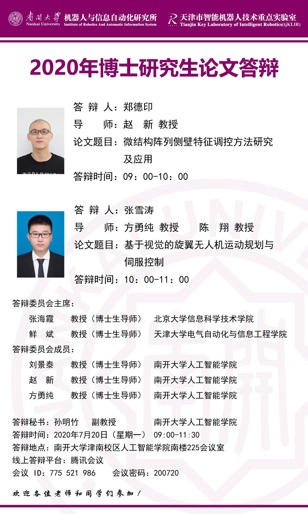 【答辩公告】永利yl23411博士研究生郑德印、张雪涛毕业论文答辩公告