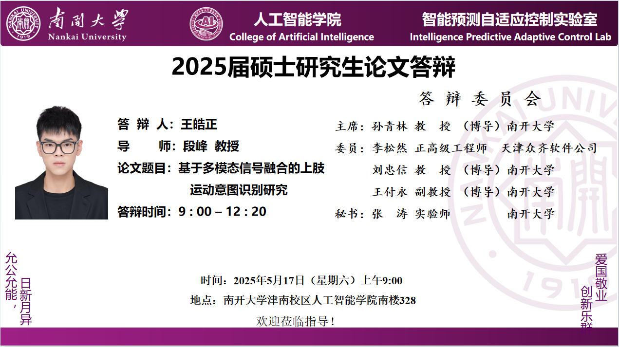 【答辩】2025届夏季毕业答辩公告----自动化系(专硕+联培)