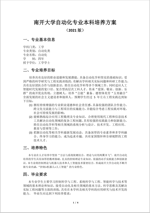 永利yl23411自动化专业本科培养方案 (2021版)